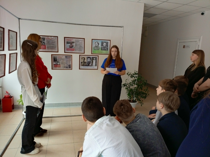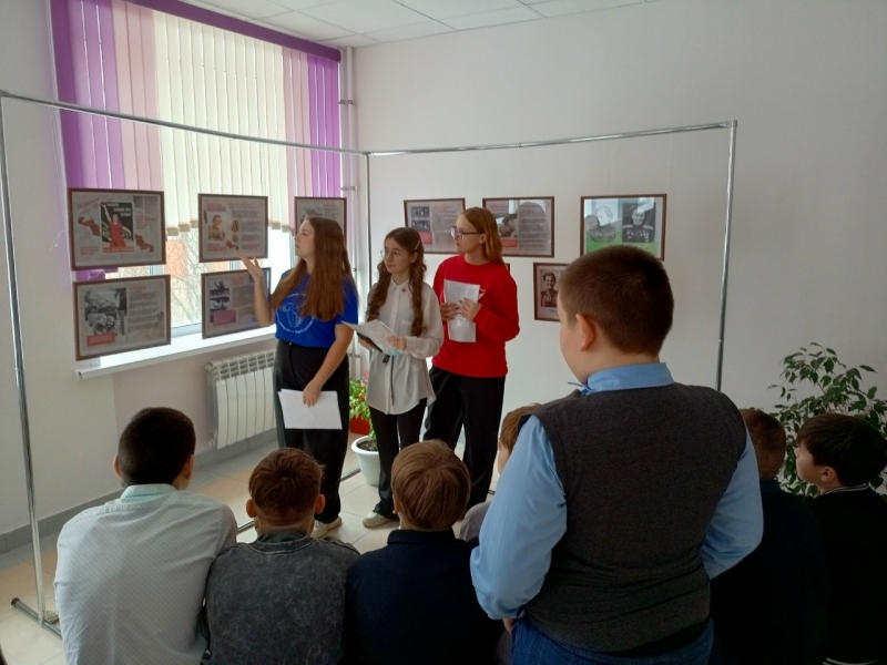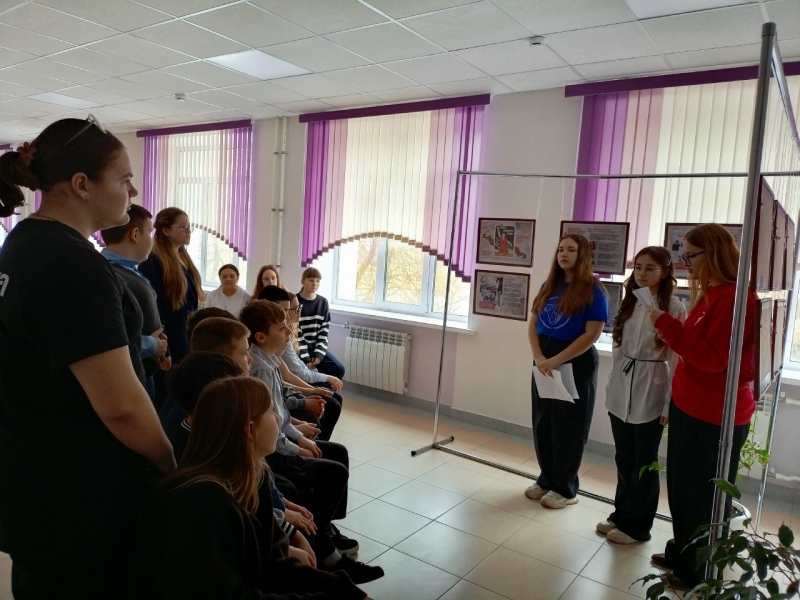 Активистки отряда "Хранители Истории" (наставник Керенова К. Н.) провели экскурсию по выставке для учеников 6 а класса (классный руководитель Харитонова О. В.).